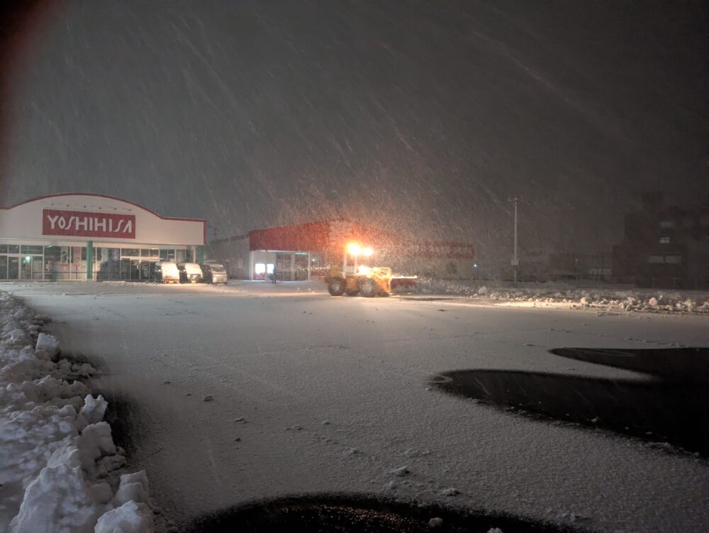 救急車両の通行を妨げないための「病院」の除雪、地域の食卓を支える「スーパー」の駐車場、そして地域の要である「港」の安全確保など、請負わせて頂いた各エリアでの作業を完遂いたしました。